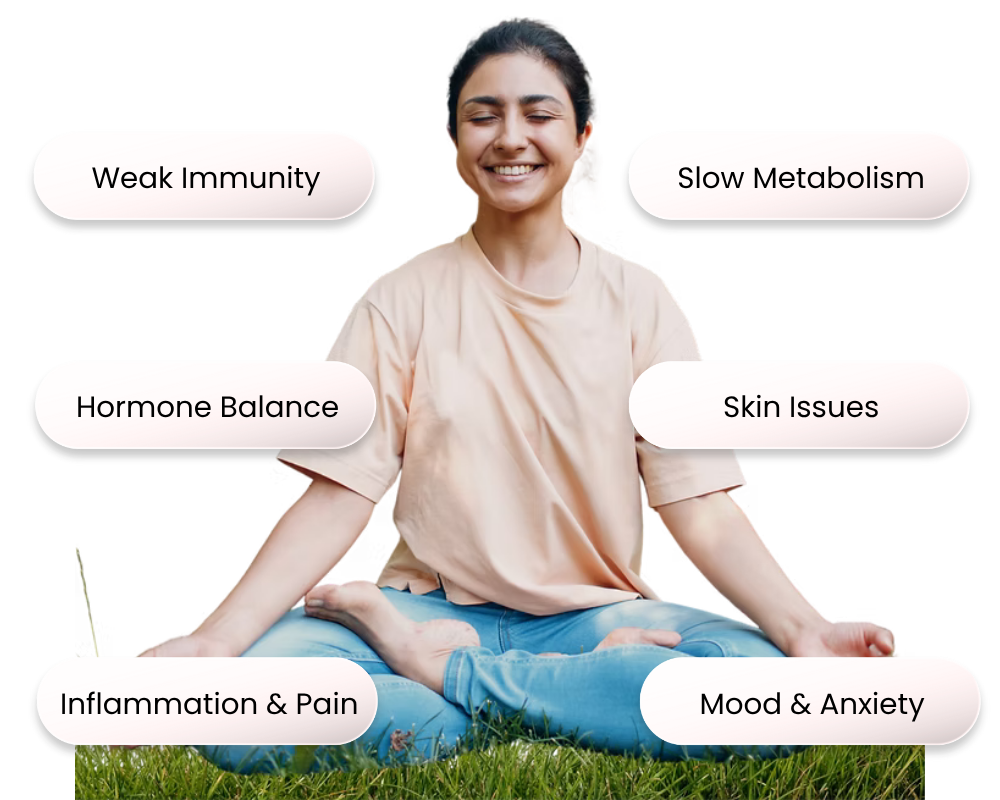 We help people struggling with chronic digestive problems like bloating, acidity, constipation, IBS, GERD, and gastritis, as well as related concerns like fatigue, hormonal imbalances, and low immunity.