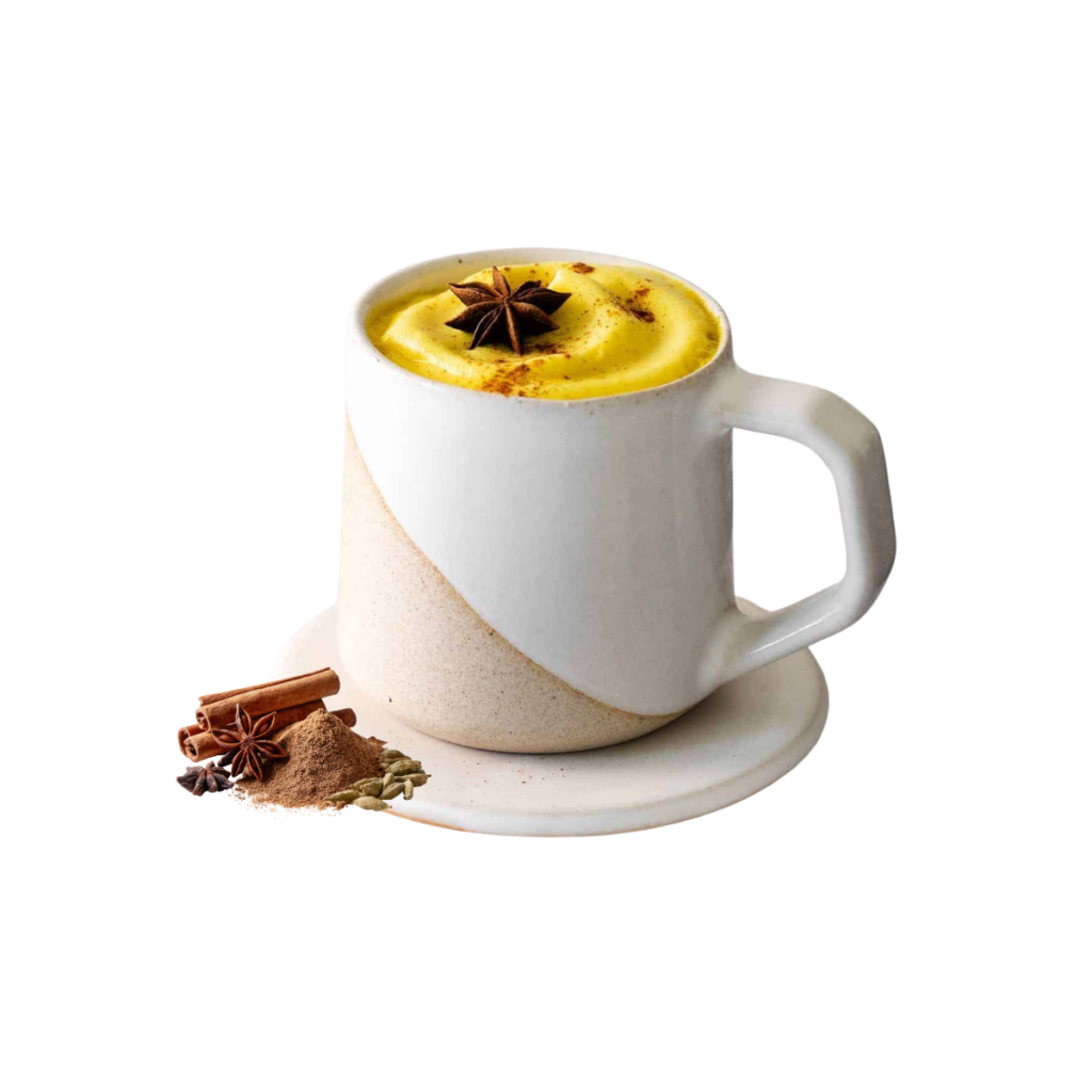 Our Turmeric Latte contains ingredients traditionally used to support digestion and reduce inflammation in the gut. Turmeric helps calm digestive inflammation and supports gut lining health. Warming spices help stimulate digestion and improve the breakdown of food. The blend supports a balanced digestive environment and helps the gut function more comfortably. Enjoying it regularly as a warm drink can help support daily digestive balance and gut wellness.