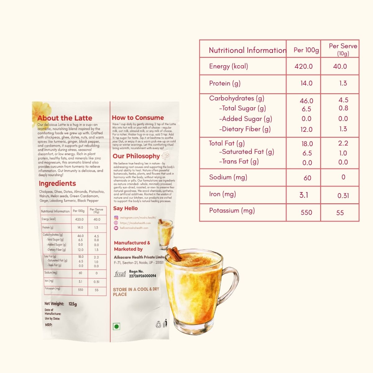 This latte includes chickpeas, nuts, and ghee for added nourishment, protein and digestion support, making it more filling and balanced.