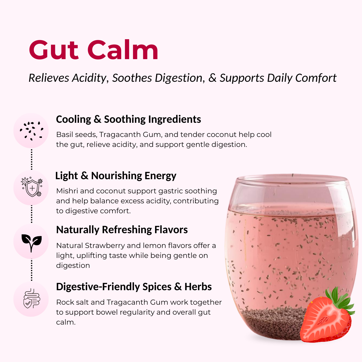 Balanced with mild sweetness from mishri, a hint of rock salt, and refreshing strawberry and cranberry, it offers a naturally cooling experience without heaviness. Ideal for warm days or when the stomach feels irritated, Gut Calm supports daily gut comfort and hydration.
